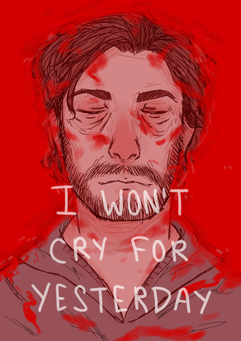 (It's such a lovely picture of him, too. It's sad, but just... the expression on his face and the way he's sprawled over like that and the way the props are scattered around and the lighting... it's just steeped in a mood, missus.)