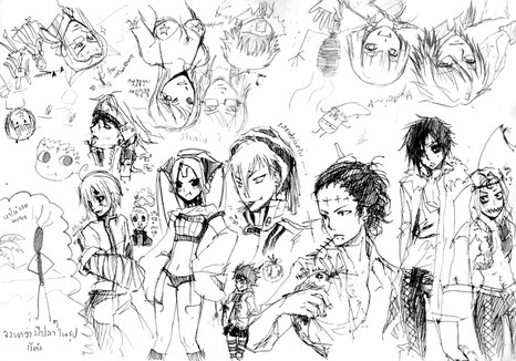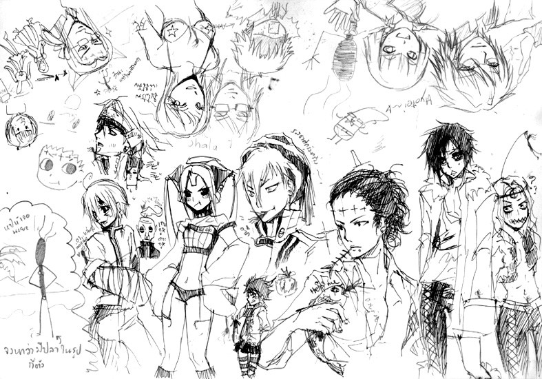 "Merichi... Mah boi, Chimbley! Haha, Newt Filinas looks so the way Bilious made him... Keyah has butterfly-control powers? Ah, Ophelia. Manic totally adapted these folks to her style... who's that girl with the striped socks?... Relik, Annie... mm, Manic really oughta illustrate some Victorian-era storybooks with hard-ass lady characters... Aw. Look out Mizuno, Arma's gonna peck your big shiny black eyes out... Awww, Tabby looks too cute!... *sees Karl monstrously lurking towards me and looking like a gigantic axe murderer* PUTANG INA!"