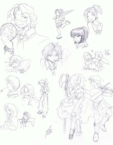 While waiting for the Law of Talos results I completed a pile of sketches for friends, artists whose work I admire, and people who just plain have really neat characters.So. I give you...