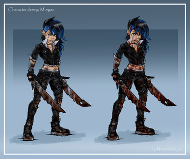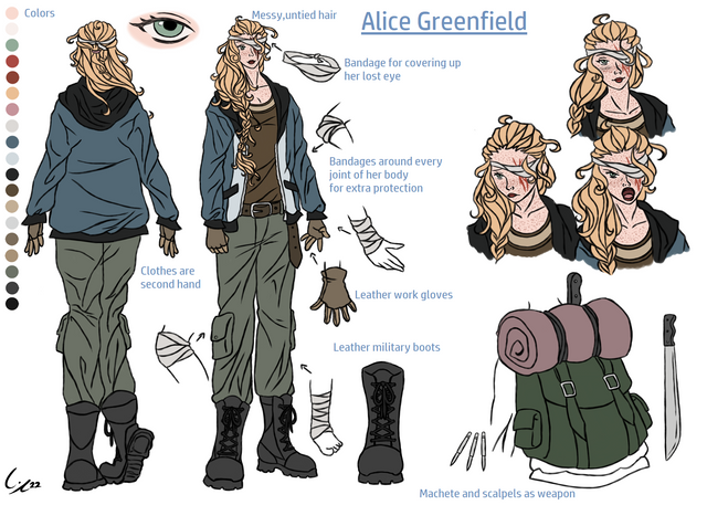 It would be interesting if she came across the group that abandoned her either begging for help or already eaten by zombies. Awesome character design!