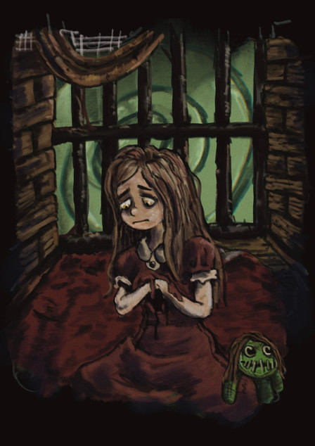 Lol, no seriously something unholy was locked away in this house... The house decorated in chains... this girl separated from her friend finds the most disturbing part of the house where scribbles and claw marks decorated the walls and floor... And old rusted chains lie across the furniture... apart from the wardrobe which was locked and chained to the wall... This was enough to turn the girl away... and from whatever rattled inside the old wardrobe... I guarantee you it isn't a Boggart... and it's not Pennywise in there...