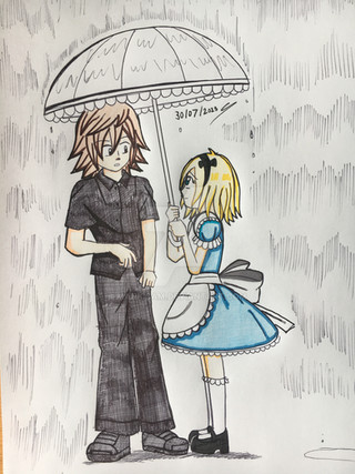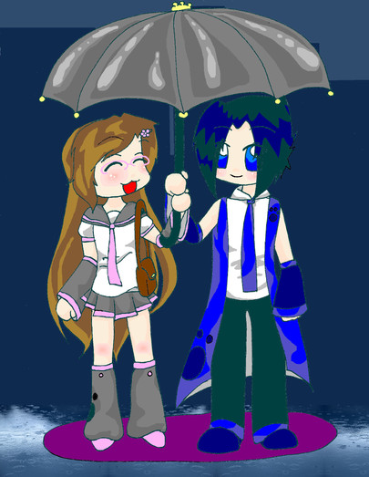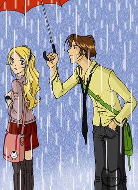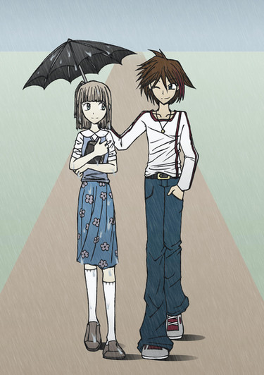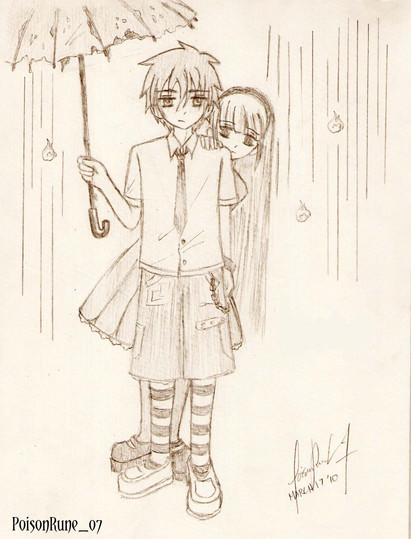 Not uploaded anything for a couple of weeks, so i had this idea of a picture to draw [tho the idea is not original there's thousands of pictures here about a boy or girl lending someone an umbrealla]I was coming home from work the other day on a sunday and i missed one of the buses home so i decided to walk instead of waiting for another one, cause they don't run as often on a Sunday... i was just about halfway home when it started to rain... i got soaked but there was no girl there lend me an umbrella which was wh i drew this and also cause of a song that got me to do it: It's Raining Again - Supertramp