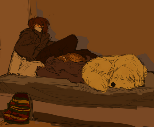 Yea so I forgot to turn my heater on and so it got like 30 degrees in my room and I woke up with all my pets cuddling up to me because it was so cold x'D