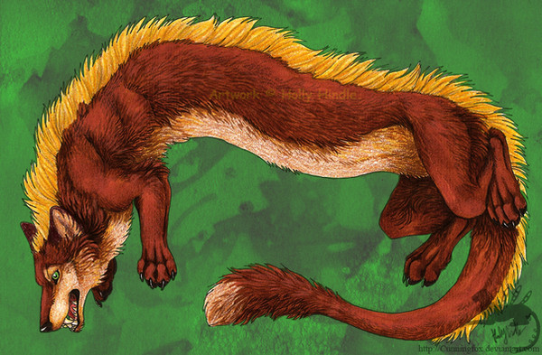 Ohmygod, YES. Yesss! BD He. . .FILLS ME WITH SUCH JOY. He is so very fluffyyy. . .! DAMN THAT IS SOME GREAT FLUFF RIGHT THUR and I wish he existed so I could could pet him. :C Why is that not so? Because so SUCKS, that bastard. But Jesus, this is even more GREAT-like than what I imagined Mr. Weasel-Dragon as being, mine was just a long dragon with short legs, but this fella is all cute and weaselyTHEWEASELIERTHEBETTER, especially in the face with those eyes! Ilovehims'much, thank yooou! B'D!