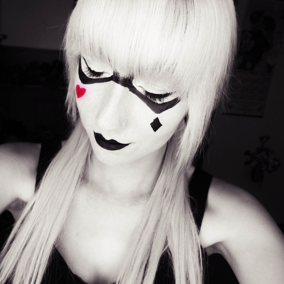 Base of my Painted Harlequin look. I rather like it on its own as well.Kryolan Aquacolor black and white.