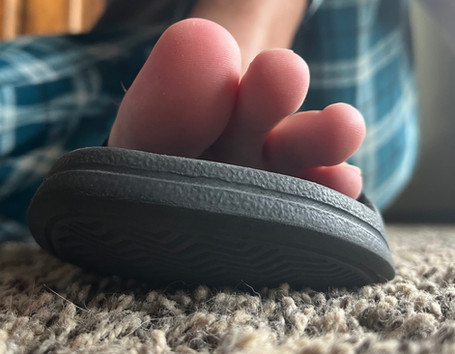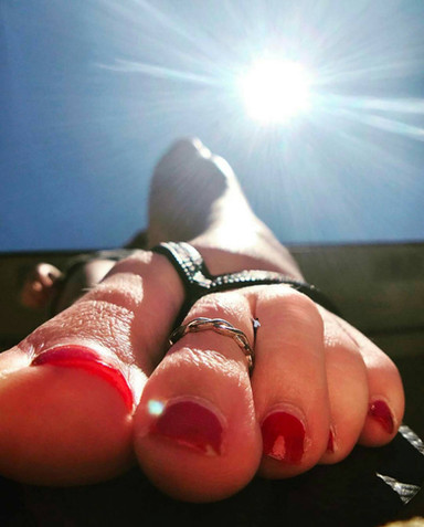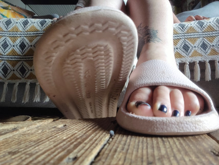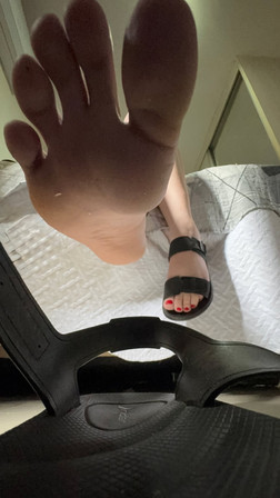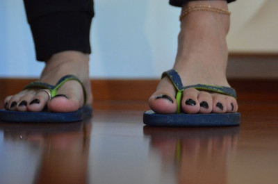 All of a sudden they heard the goddess giggle at something on her phone, causing her toes to react by scrunching and tapping her flip flop.