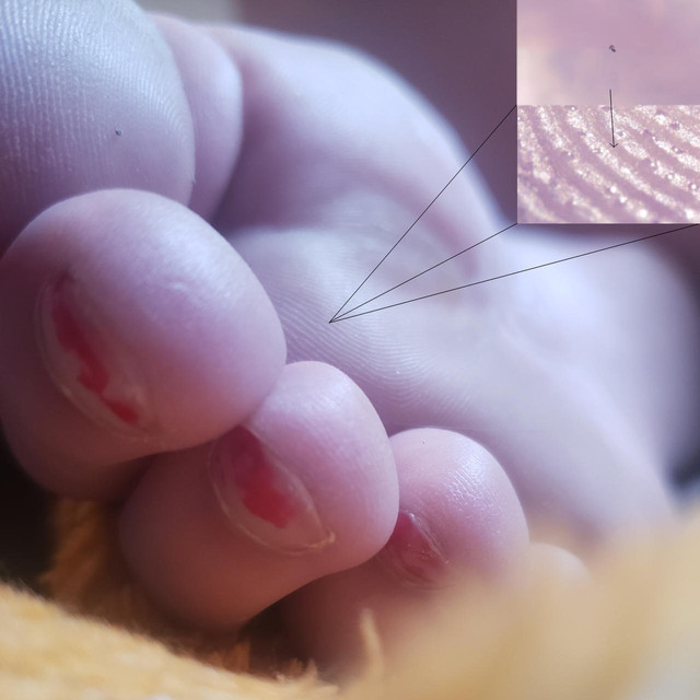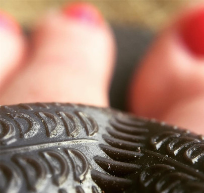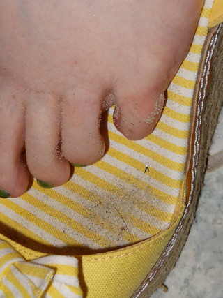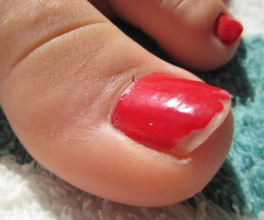 On the surface of his wife's nail bed the man stood. He was exhausted from the climb, he knew he had only a certain amount of time to climb on before she eventually would walk away. He stopped on her nail bed, observing his surroundings. As he looked down he could see his reflection in her polish. As he looked up he could only see the enormous mountainous leg that was attached to his wife. He could make out every micro detail on her toe and every strand of fur on her shoe...