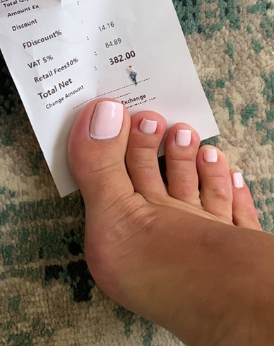 The toes of his ex wife continued to wiggle as she sat in the chair talking on the phone.