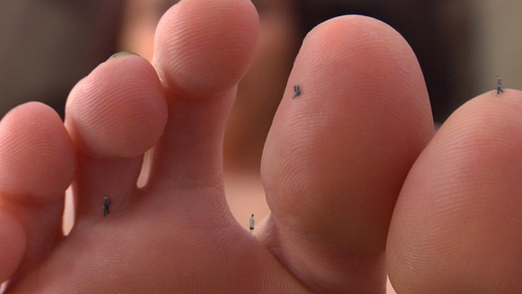 I am not sure she notices the mants at her toes