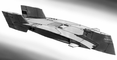 That's one sweet ride. Is it some sort of hover vehicle, like a land speeder from Star Wars? The two front "wheels" look like engines rather than wheel cowlings, which is what I expected.