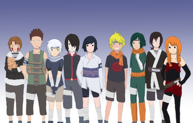 For the guy beside Hinata, if you don't write it down I would've never figure out that is Haku. Being Kakashi's son can really change a boy's outfit I guess.