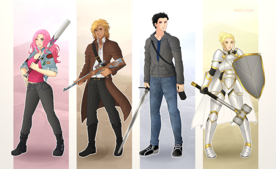 Price includes a simple background like the ones shown in the examples.Detailed and/or complicated outfits, armor and weapons will cost extra. We can discuss each case individually.