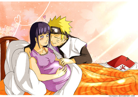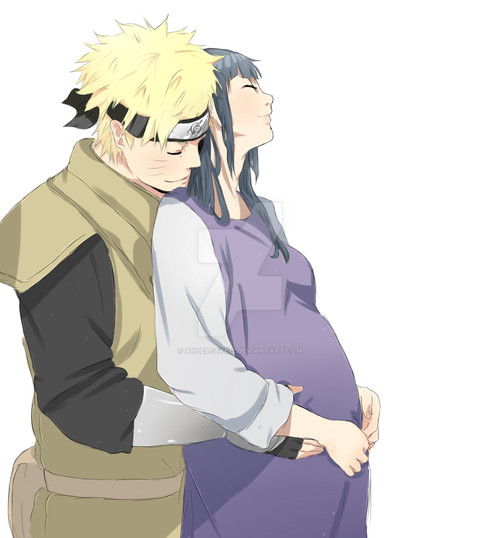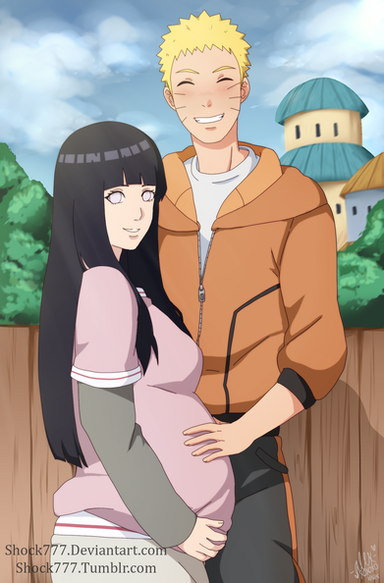 This is a commission forHere we have Naruto and a pregnant Hinata, recreating a version of the scene from Hinata's fantasy in chapter 678.