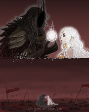 She had dashed to stand between the dragon and Malia, assuming the dark creature would aim to kill the princess before she could attack the maiden. But in the golden eyes of her king Hedera didn’t find killing intent. Against all reason, she let the dragon continue his path, witnessing how he chose to place himself between Malia’s fist and the maiden’s thin body.
