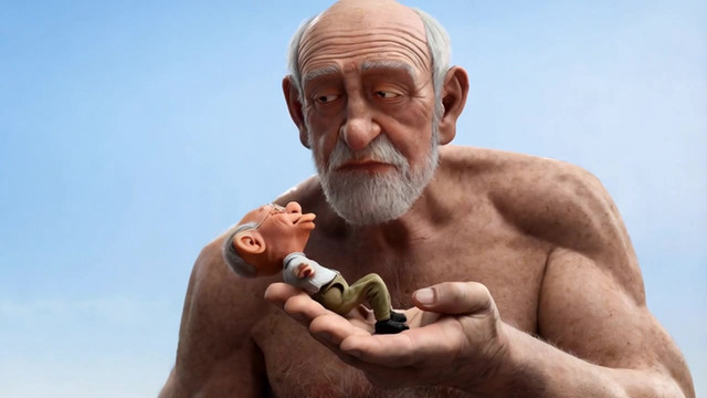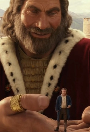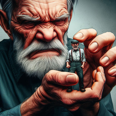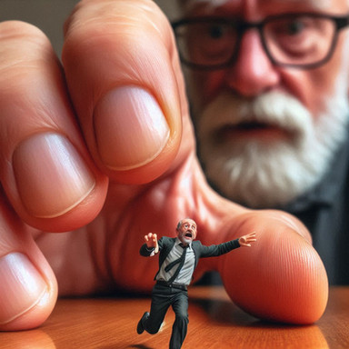 It was hard for the little man not to jump off this platform and run away as fast as he could when the giant's colossal face came down so close to him that he could feel his hot breath. It was as if he was watching a 3D IMAX movie but with all his senses. The low-pitched voice of that enormous man made every one of his tiny bones vibrate, it was quite scary and there was something in those eyes that was mesmerizing, somehow hypnotizing that kept him from going anywhere.