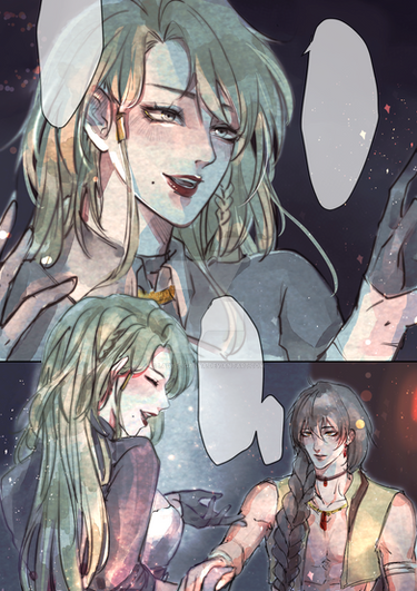 They stared into her silver eyes, as if gauging whether the woman was worthy of touching him, searching for any ill will in her visage. Bayard stepped out of the way first, seemingly appeased; he never took long to make up his mind, one way or another. Aldous on the other hand, wasn’t convinced. He stretched the instant firmly, throughout in his evaluation… until Gorken started coughing blood.