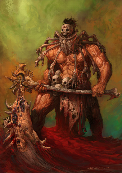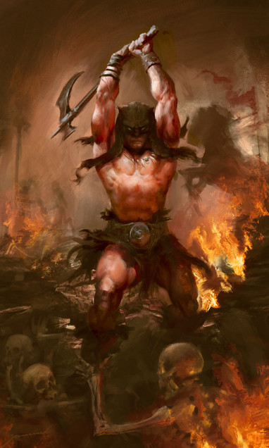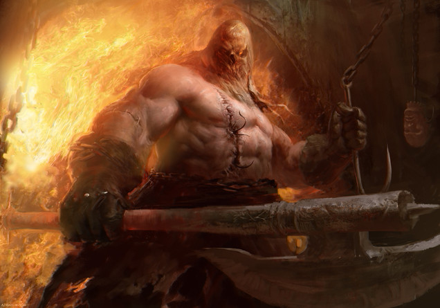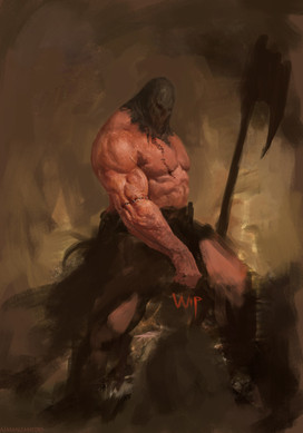 Grimdark and brutal Exquisitely so! You would probably excell at the chaos dwarf torturer concepts pioneered by the Hellcannon in Warhammer. Or any barbarian touched by darkness as here, obviously! The chains and cut-off head are such nice touches.