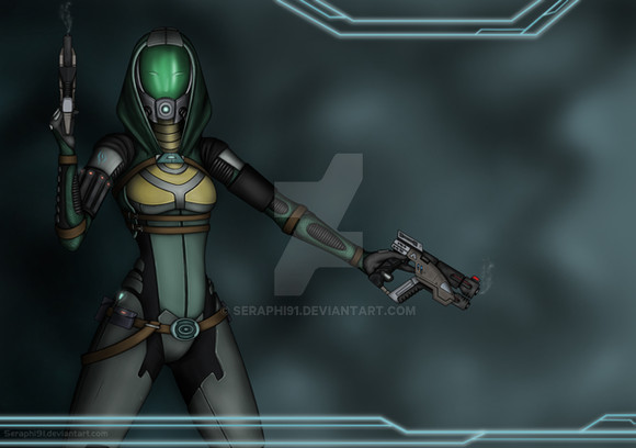 My quarian OC Daya'Shael nar Rayya.She lives on Omega with her Friend Qayla, and she makes her living by being a pickpocket and tech genius.