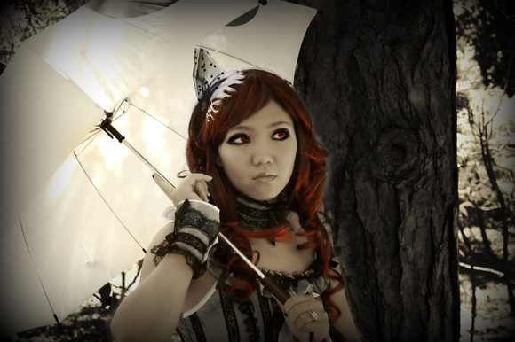 My Gothic Ring Leader shoot. First picture of the series. I made that hat from scratch^_^ Using a foam coffee cup and various other toolsModel: Me