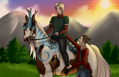 “I figured I had to see you make a fool of yourself on a dressage horse,” Mark said with a small grin, pulling off the lid of his yoghurt and licking the excess from it. Ryan watched with idle curiosity.