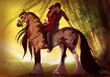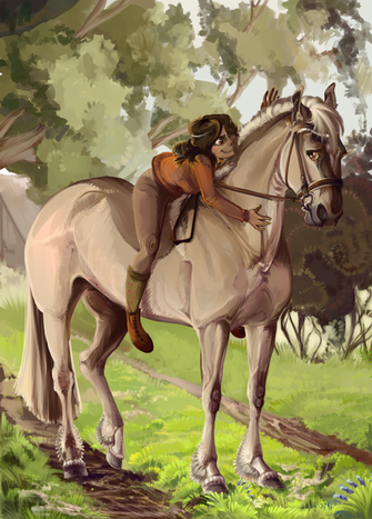 The colors and shading in this are amazing, I love how the water looks in this, and also the poses of the horse and rider are really pretty