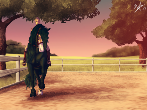 He was preferable to Mark’s second choice, Ashari, regardless. He figured the mare would put him on the floor in five seconds if she realised what was going on. Shakil was out in one of the stallion paddocks, far away from the mares. It was a short walk and soon Mark was watching the black stallion bolt away from him towards the other end of the paddock, tail high like a banner. It set Devil off in the next paddock and soon the air was filled with the sound of thundering hooves.