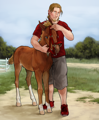 He was diagnosed with autism when he was fifteen but hasn't let it get him down. He took a course to become a farrier straight out of school and that's what he's been doing ever since. While he's not a big fan of people so much (they're loud and confusing), he absolutely adores animals. He has a special way with horses, and they all seem to love his quiet nature.