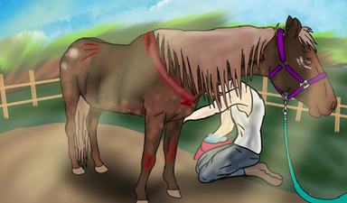 "Well, no sign of illness, breathing and heart rate is good, I'll just take her temperature." The mare seemed to hear the word and pinned her ears back, giving a small squeal as the man approached wearing gloves and armed with a thermometer. Zoe held onto her and within a minute or two the event was over, and Penny hastily went back to her meal. Lee nodded and smiled. "All good. Any movement yet?" Zoe nodded and grinned.