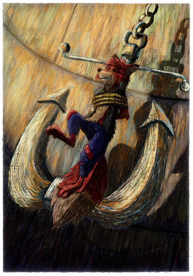 You have the most amazing coloring technique I have ever seen. I love all the details in this and yikes he should be glad the rope broke o.o