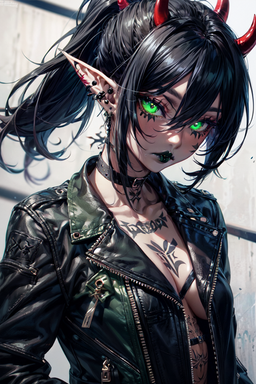 #ai #elf #punk #leather_jacket #γ¨γ«γ #γγ³γ― #ι©γΈγ£γ³ #stablediffusion