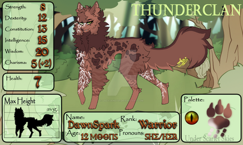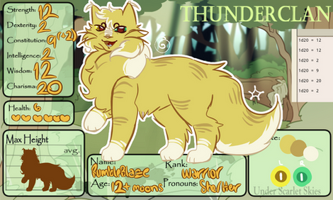 Time continued on after that and day-to-day life always found ways to keep her on her toes and after many moons, after getting over Scorchsky and being afraid of potentially ever finding love proper again, she noticed that she was slowly falling for her best friend, Treeleg. Only to find out that he fathered Sagepetal's kits. While she was incredibly happy for the two, knowing the pair had always craved kits in their own individual lives, she couldn't help the familar pang of sadness and heartbreak deep down. But her nieces are beautiful and she loves them deerly and is very, very proud of her now warriored kits Ruststorm, Robinspark, Emberprance(she's particularly fond of Ember's warrior name. It flatters her) and Sun(name to be updated)