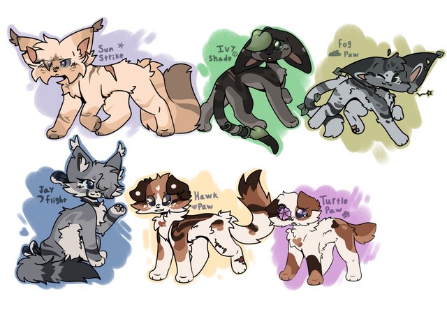 Hi there! I though what better way to advertise this group now that it's almost open for general applications was to made adoptable especially with the exclusive mutations because they seem really fun!!I thought it best to make 2 for each clan to make it even between all of them!