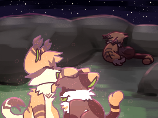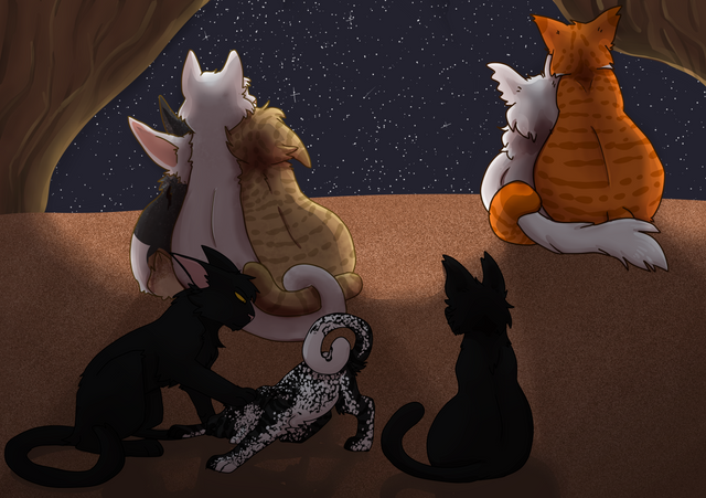 Most of the time, Thrushsong feels like he's just going through the motions when he comes to parenthood, like he just needs to do enough to keep the kits alive and somewhat happy and that's all he needs to do but there are times that are getting more and more frequent as they get older that he actually has moments where he loves to just cuddle with them and teach them all about he knows. In this, he's teaching them about StarClan and telling them stories about those he once knew.