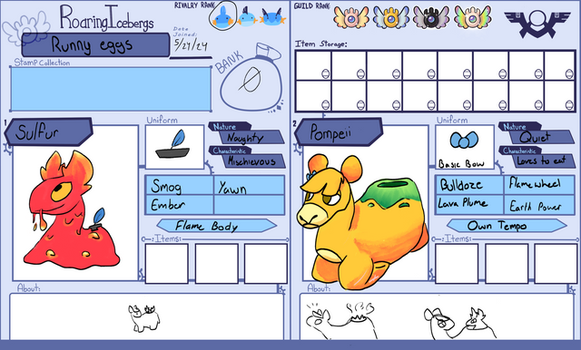 Tumble is quite literally the black sheep when it comes to his flockmates and most other wooloo, he's very outgoing, loud and combative, seeking