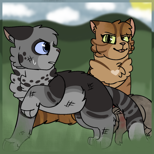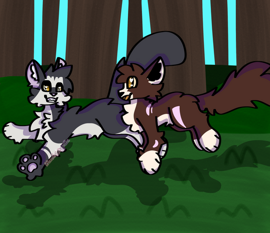 For the current event!Ruststorm and Blizzardsong kind of got it in their heads that if they go out on their own instead of on a full patrol to find the mystery creature that the magical looking feathers came from would be a good idea!