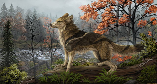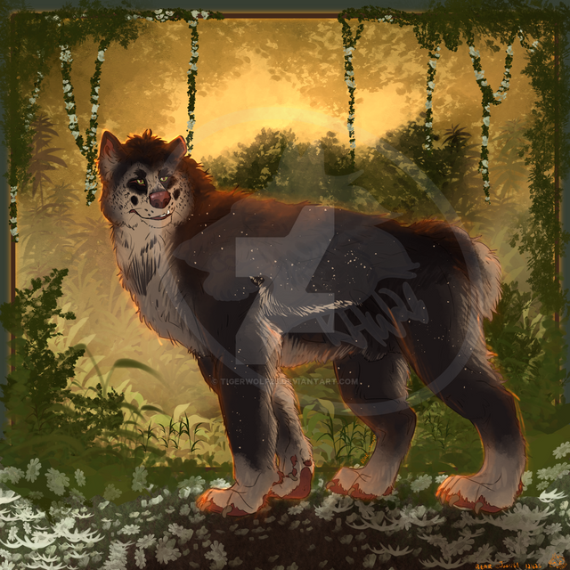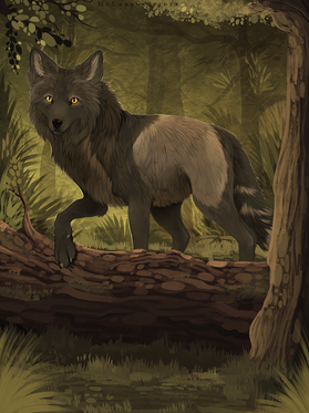 I like how all your thin brushstrokes show up to define the edges in the finished piece. The fur shading is quite complex, too. The way that the trees become more vague and wavy in the background helps to give this depth, as well. The unified forest green color scheme also worked out well in this.