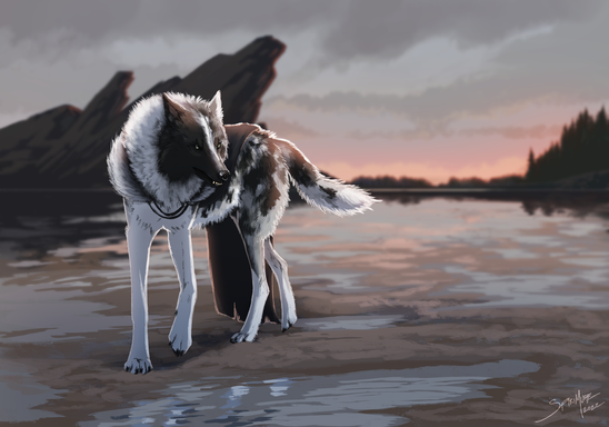 I love the perspective on this piece. I also love your detail in the water, fur, and that perfect halo.
