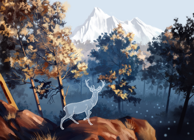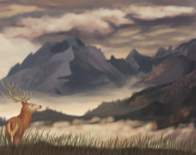 The colours, mist, anatomy of the deer are all so darn pretty. Wonderful work as always! I can't wait to see more. c':