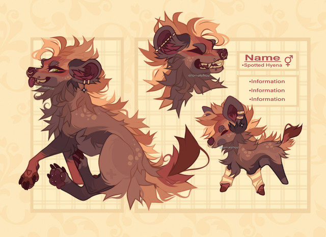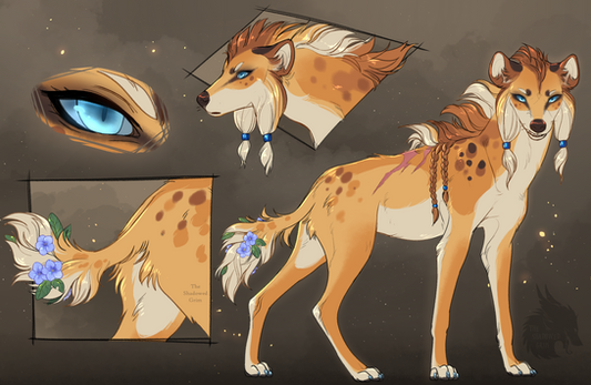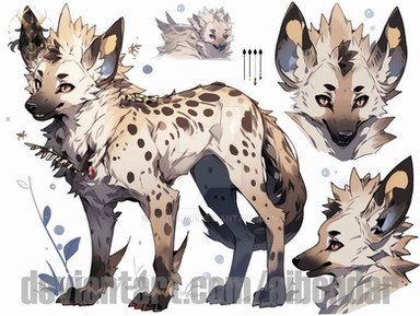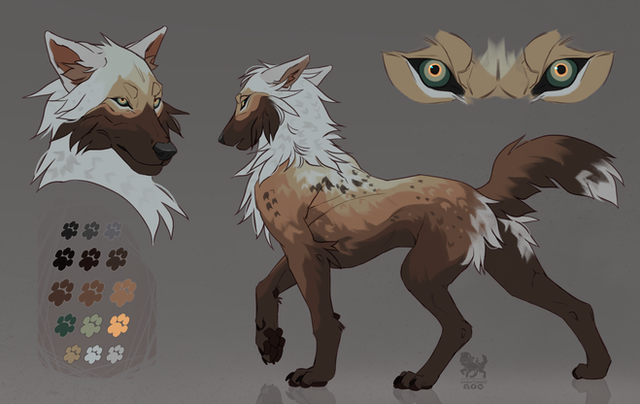 Made a new reference sheet as I decided that a hyena is more fitting than a cat for her, at the moment. There were subtle design changes, specifically around her paws.