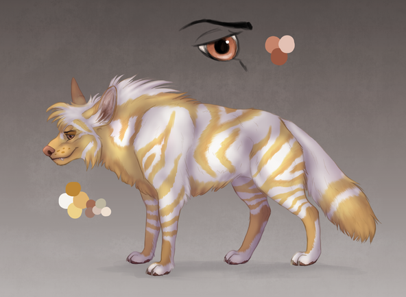 This is such a cool character! Love the colouration. Is she based on a striped hyena?