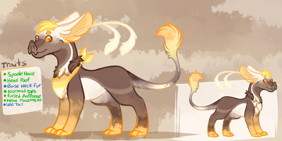 Here is a new, updated, reference for Maple - despite having updated not so long ago into a hyena. The change is a bit subtle to what I originally was going to change it to - I was going to have the tone more sandy but decided to keep her orange hue.There's less stripes now and more spots. And also a bit of blue added to her body to contrast the orange.