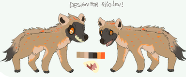 Overall a really good desgin! but one flaw is the hyena anatomy, yes, I know my hyena character has some flaws in that too, but she does seem a little too dog-like in appearance, and I understand it might just be your style, but usually a spotted hyena's face is more 'rounded' when it meets the snout and also has a more 'bear-like' appearance to it other than just a canine's.