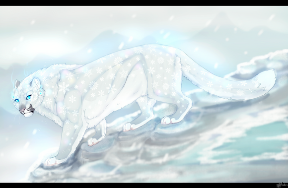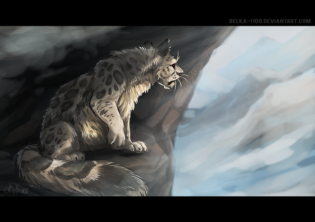 Oh my, so beautiful... I can tell that you work hard on your anatomy, and it shows! I also love the way you paint snowy pictures. Once again, your fur shading is beautiful and has a lovely flow to it, and I really like the spot patterns on the creature. The texture and the painting on the mountainous background is superb, and it all fits together to make a lovely wintry piece. I like your uses of colour, too.