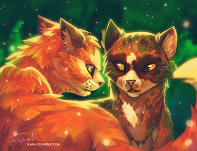 however, i have some constructive criticism for you; your cats, I've noticed- are a little bit off. I wasn't sure what was different until I realized that you started drawing dogs first and THEN started drawing cats. that's what's different- your cats are canines. the noses look a little too big, the ears have fur coming from one side of the ear, not from all directions like wolves. (there's just a small canine trace of that there)Β