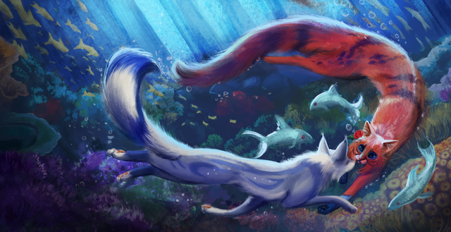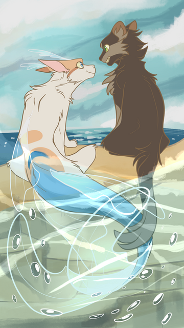 That's so beautiful! I love the poses and the way you drew the tails! I love the body shape an the anatomy! I love the water too! How did you draw the ocean?