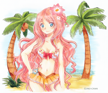 It's already May!, and May is usually associated with flowers. Personally, I hate May. Because May reminds me that June is already near and I really hate June, because it reminds me of my birthday and I don't want to grow older. In my country, May is the end of summer and most students are preparing to comeback in school for June. So it's depressing.But it's still summer, and I don't have enough time to draw clothes, so here is another bikini drawing~ >.<