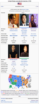 OverviewThe California General Election of 2035 is considered to be one of the most significant realigning elections in the country's history. In the first 14 years of its existence, the California Republic had a very left-leaning "2 1/2" party system: the center-left Democratic Party was considered the natural governing party of the country (continuing over from the old United States); prior to 2035, it had won at least a plurality in both the Senate and Chamber in every election, and had won an outright majority in both in the 2022 and 2031 elections. The left-wing Progressive Party was jokingly referred to as the "Shadow Party", as they ran to the left of the Democrats but seemed to operate under the assumption that they would never gain a majority, or even a plurality. They consistently dominated local elections in the Los Angeles and San Francisco regions, but rarely finished above second elsewhere in the country and always finished second nationally.