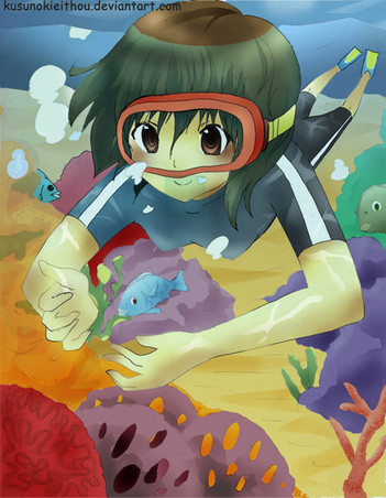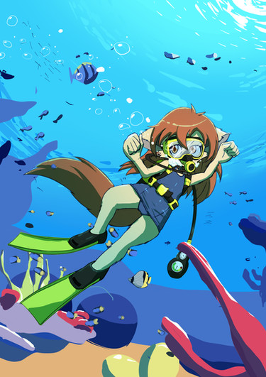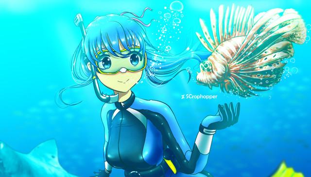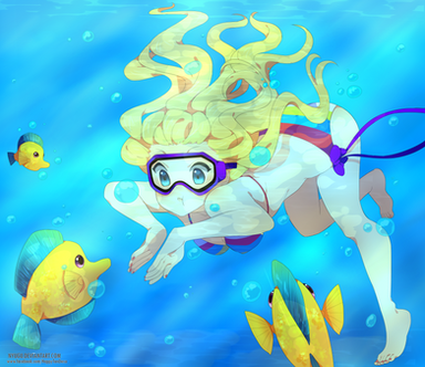 #clownfish #ocean #blondehair #coralreef #cutegirl #digitalart #diving #fishes #originalart #originalcharacter #underthesea