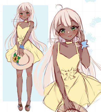 #animegirl #blondhair #cutegirl #sundress #digitalillustration #greyeyes #longhair #originalart #originalcharacter #originaldesign #yellow #animemangagirl #ocart #animeartstyle #darkskinnedgirl #humanoidoc #medibangpaintpro