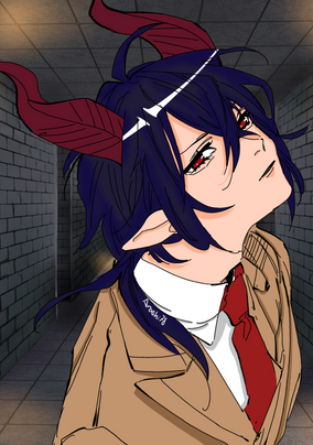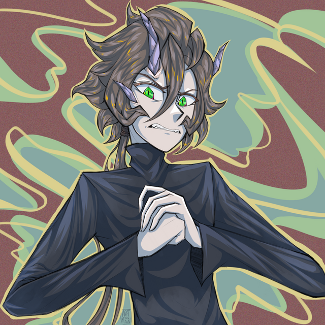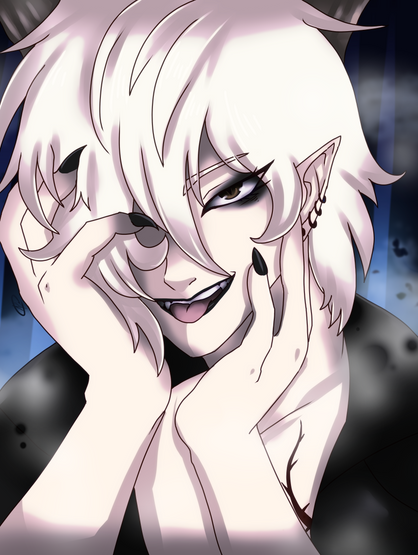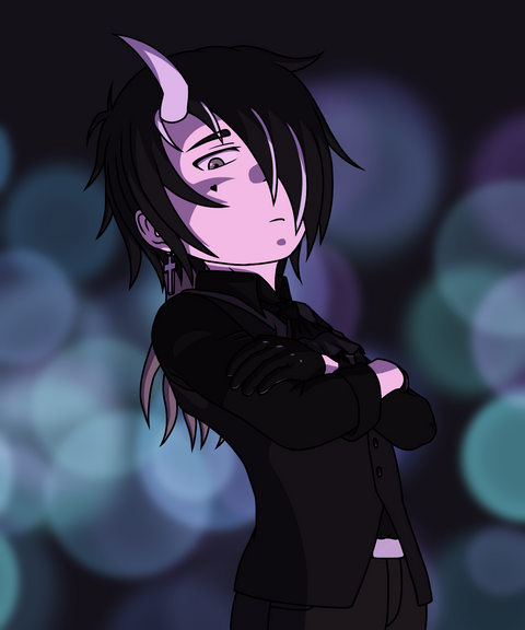 #suit #animedrawing #animeportrait #animestyle #bishounen #bluehairedboy #demonboy #digitaldrawing #gloves #horns #hotmale #incubus #originalart #originalcharacter #originaldesign #shorthair #yelloweyes #animemangaboy #medibangpaintpro
